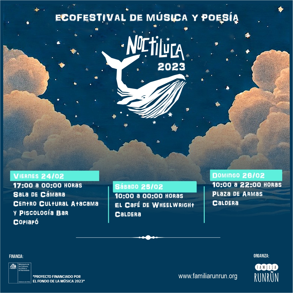 Atacama celebra el arte, la música y la poesía con Noctiluca, ecofestival gratuito que se realizará durante el 24, 25 y 26 de febrero en las ciudades de Copiapó y Caldera.