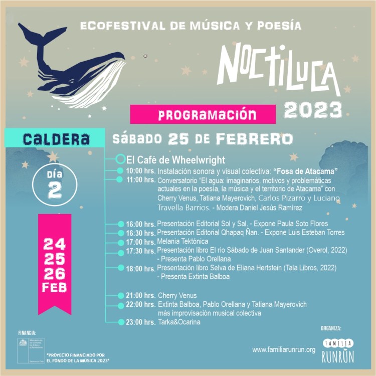 Revisa aquí la programación completa de Noctiluca 2023, ecofestival sonoro y poético a desarrollarse desde el viernes 24 al domingo 26 de febrero en diversos espacios de Copiapó y Caldera, Región de Atacama.