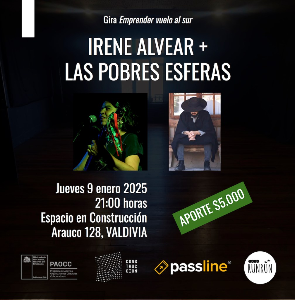Las Pobres Esferas, proyecto paralelo de nuestro Ramírez Neira, junto a Irene Alvear, cantora de El Tránsito, realizarán una breve gira denominada «Emprender vuelo al sur», que los llevará a Valdivia los primeros días del 2025.