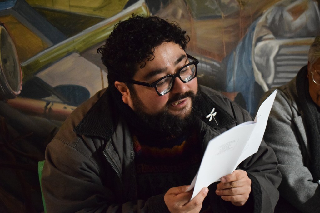 Por el otro, tuvimos al poeta y profesor copiapino Gabriel Ocaranza. A sus treintaypocos, el cronista lleva una recorrida vida literaria, transitando como becario de la Fundación Pablo Neruda en su Taller de Poesía, la Sociedad de Escritores de Copiapó, la PUCV (Casa de Estudios donde estudió), y talleres en el CENTEX y Balmaceda Arte Joven de Valparaíso. Hoy, radicado en la capital atacameña, mantiene su ejercicio docente en la ETP, cuenta con dos libros publicados (“El Chañar” y “Doméstica”, La Calabaza del Diablo) y dirige el taller de escritura local “El Chañar”, que cada día cuenta con más parroquianos.