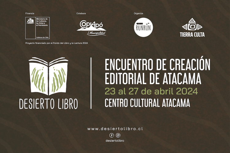 Desierto Libro, surge como un encuentro de creación editorial anual, cuya primera versión se desarrolló en abril de 2024 en el Centro Cultural Atacama. Proyecto que contó con la colaboración de la Ilustre Municipalidad de Copiapó y el financiamiento del Fondo del Libro 2024 del Mincap.