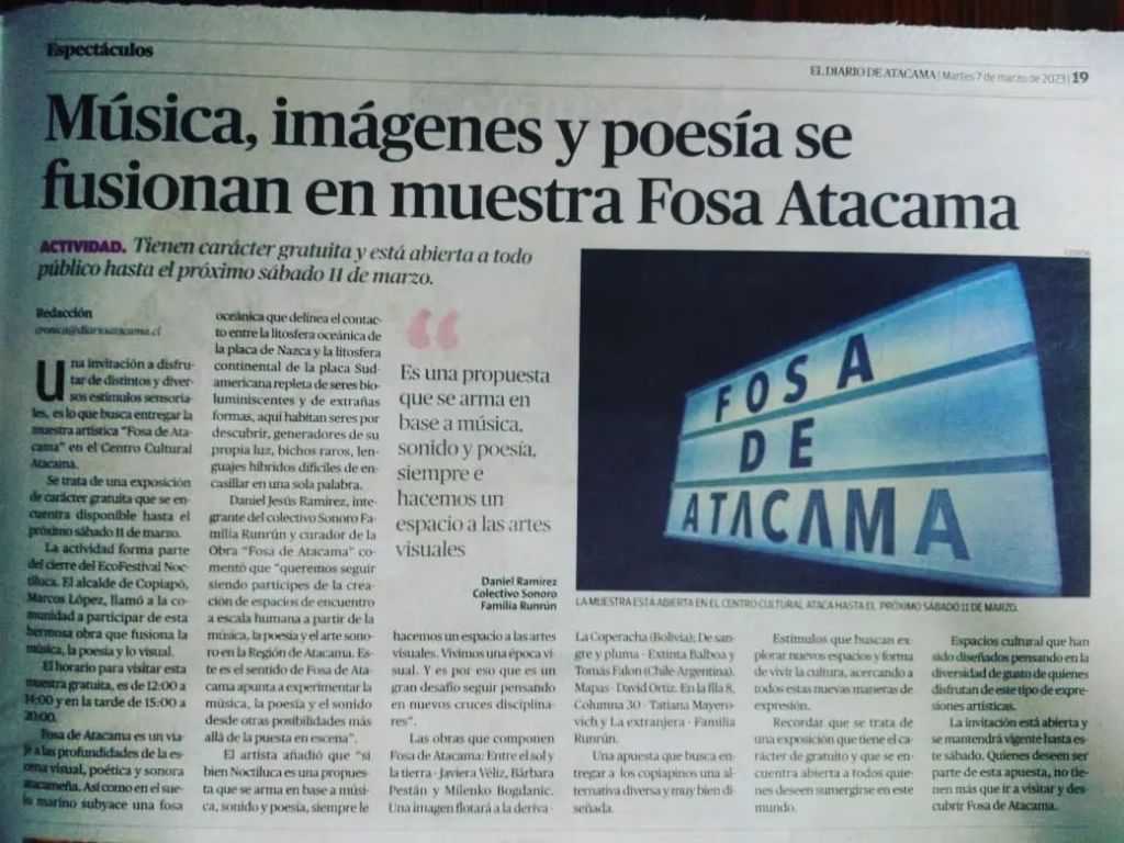 - Medio: Diario Atacama (Chile)